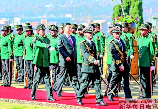 会谈前,拉马福萨为习近平举行隆重欢迎仪式。