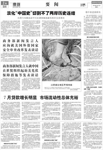| ( 2018-08-15 ) 稿件来源:新华每日电讯 要 闻 |