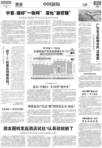 | ( 2018-08-15 ) 稿件来源: 新华每日电讯中国新闻 |