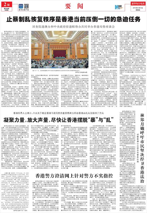 止暴制乱恢复秩序是香港当前压倒一切的急迫任务