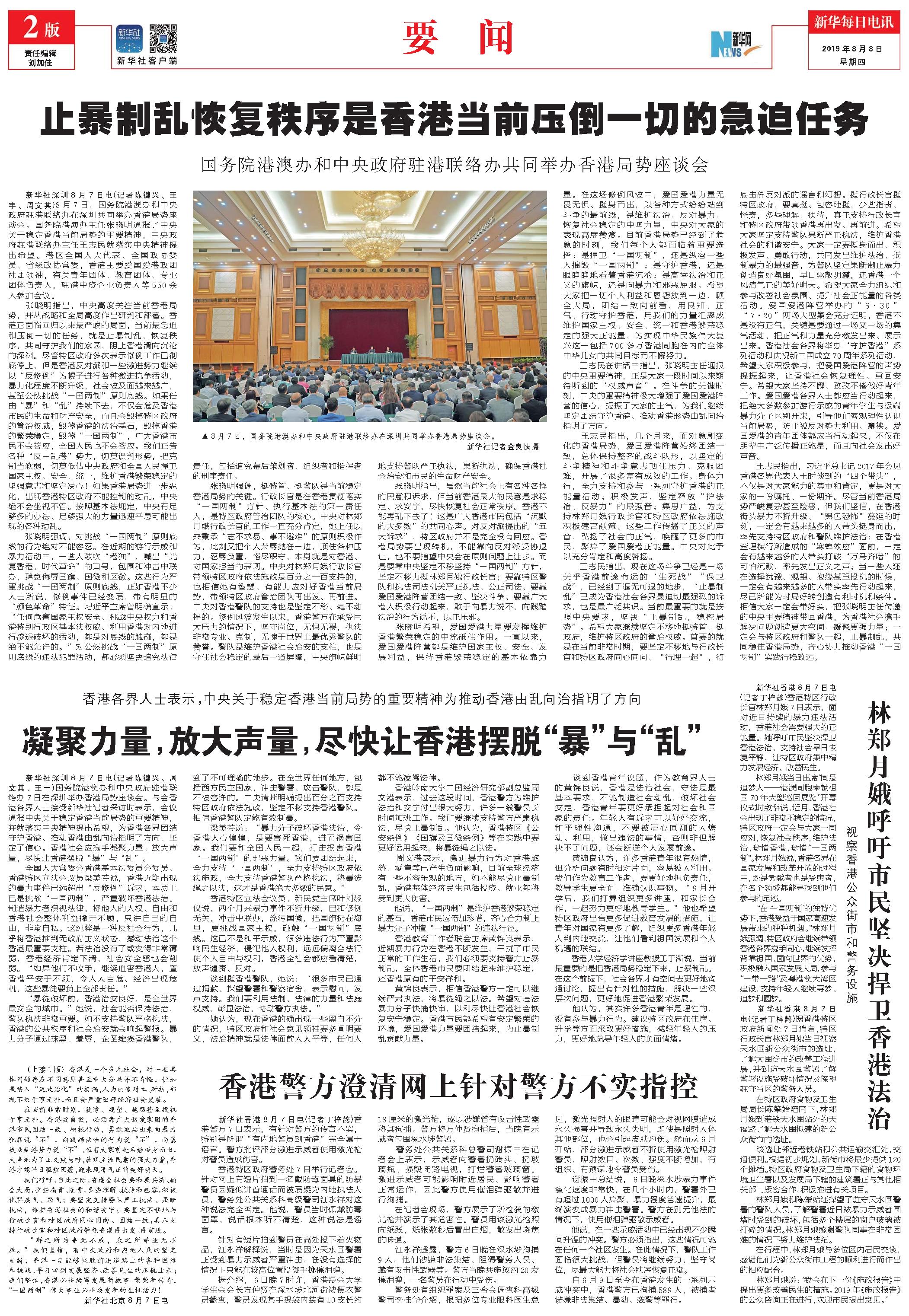 止暴制乱恢复秩序是香港当前压倒一切的急迫任务