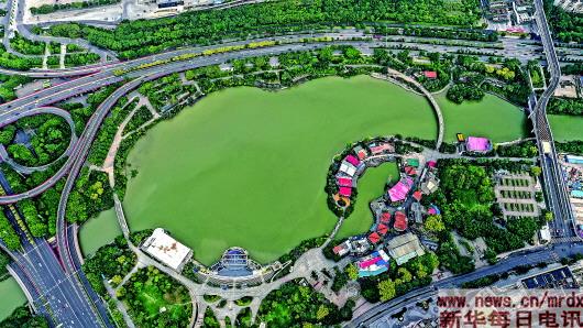 这是9月14日拍摄南宁市城区风光。初秋时节,广西南宁市河、湖、绿树与高楼构成“半城绿树半城楼”的美丽画卷。    新华社记者张爱林摄