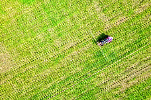 3月3日,在位于河北省南部的邢台经济开发区,留村镇郭龙庄村村民在麦田内喷洒农药(无人机照片)。 新华社记者牟宇摄